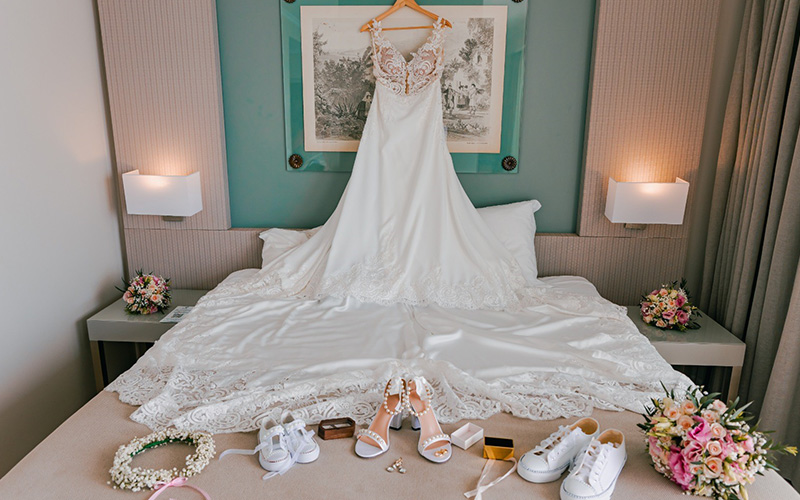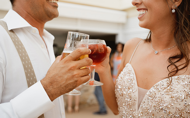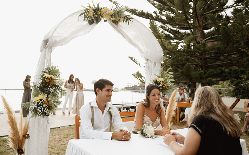 In the lush gardens of Hotel Orca Praia, with the Atlantic as a backdrop, this beautiful June wedding brought together love, family, and a touch of whimsy. The ceremony took place by the pool, surrounded by vibrant florals and elegant decor. Guests dined under the stars—joined by a very special guest: the couple’s beloved dog, proudly part of the celebration.